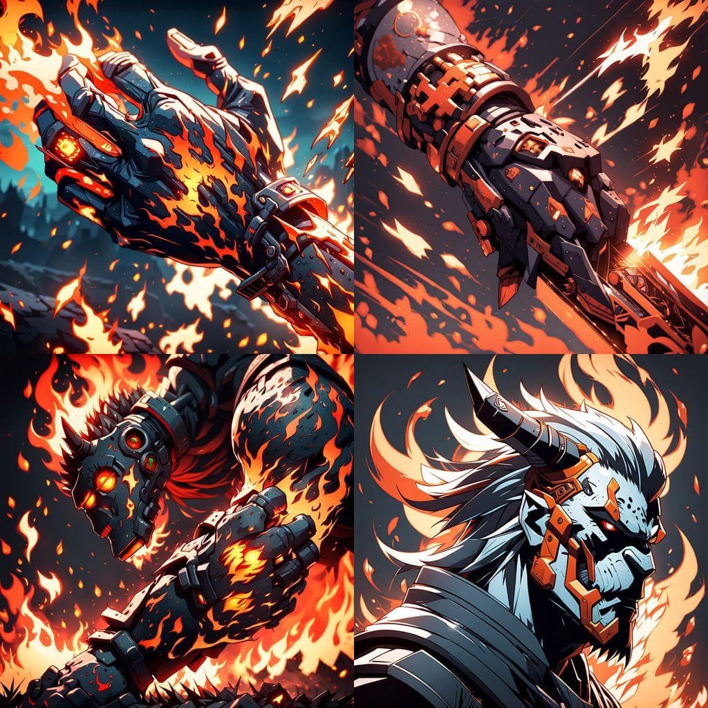 A close-up 3D anime style render of a wounded arm. The image features a cel-shaded aesthetic and deep colors, capturing a cinematic lighting effect reminiscent of Studio Trigger productions.