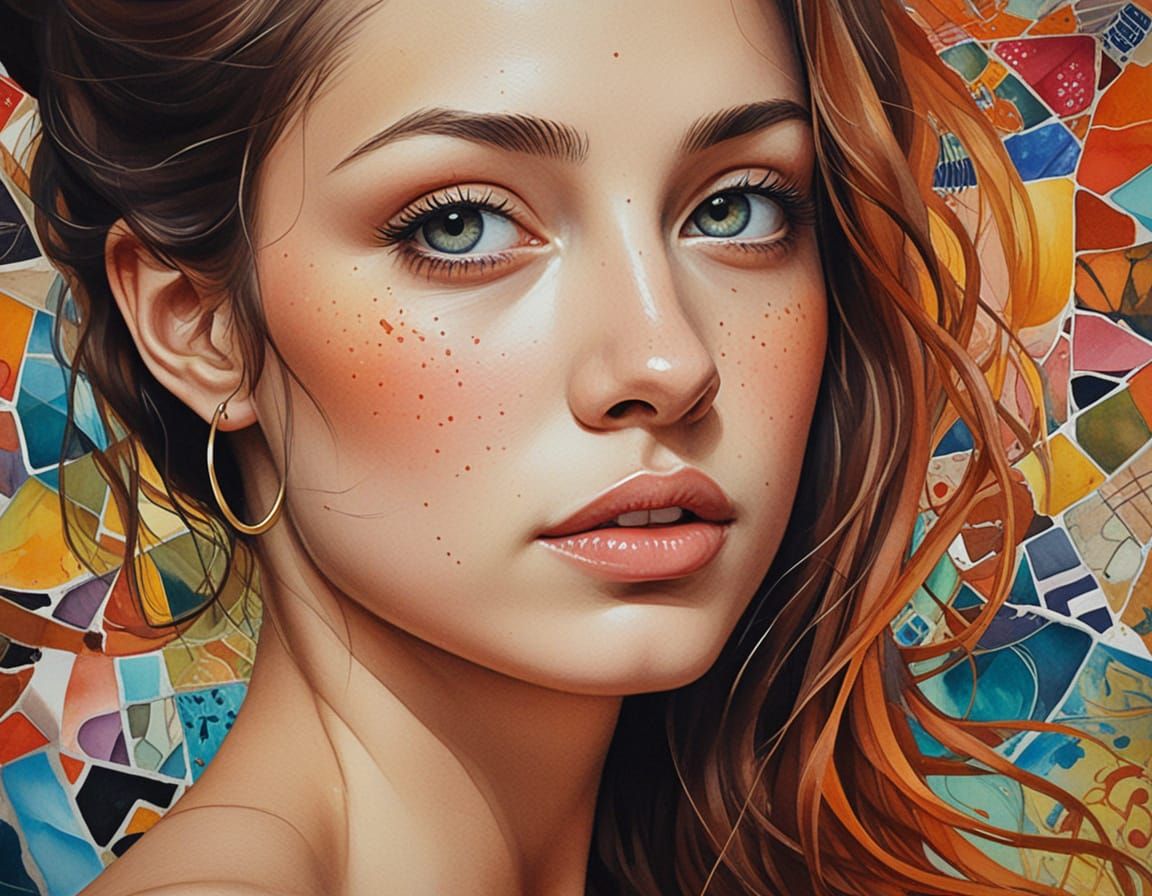 A vibrant surrealist patchwork of faces in vivid colors and ultra-realistic detail. The image features dreamlike textures and a soft, golden light, reminiscent of oil on canvas.