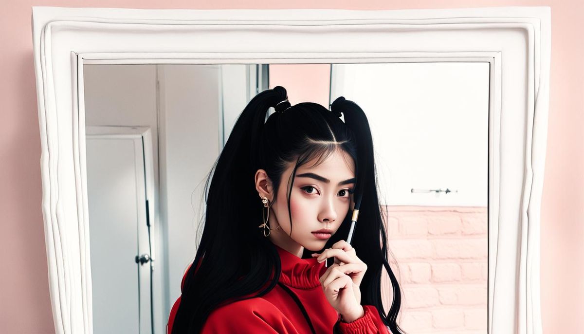 This image shows a charismatic young Latina influencer in a medium shot. She is wearing makeup and eyeliner, and her black hair is styled in a double ponytail, capturing natural light and shadows.