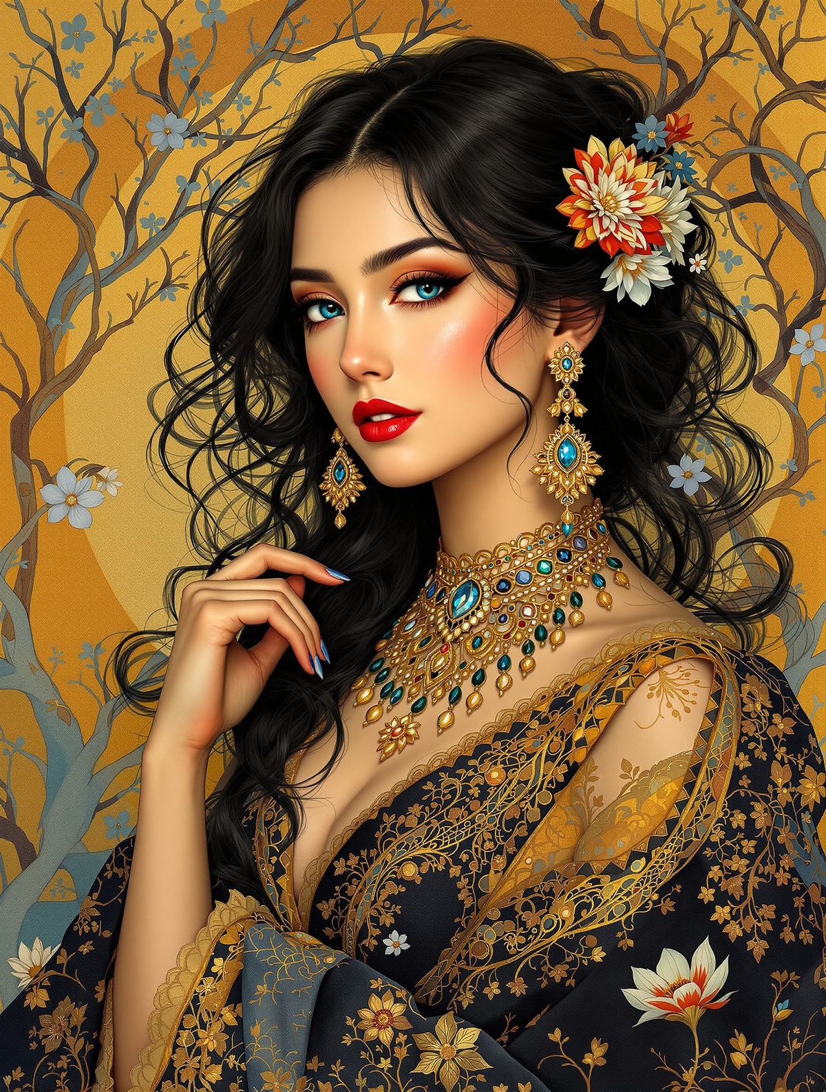 Effortlessly generate your own unique Japanese woman art inspired by Klimt and vintage Indian styles. Free and easy to use!