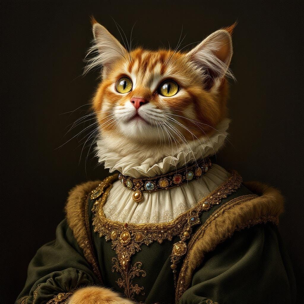 Easily create your own Renaissance cat images in the style of Da Vinci with our AI image generator.