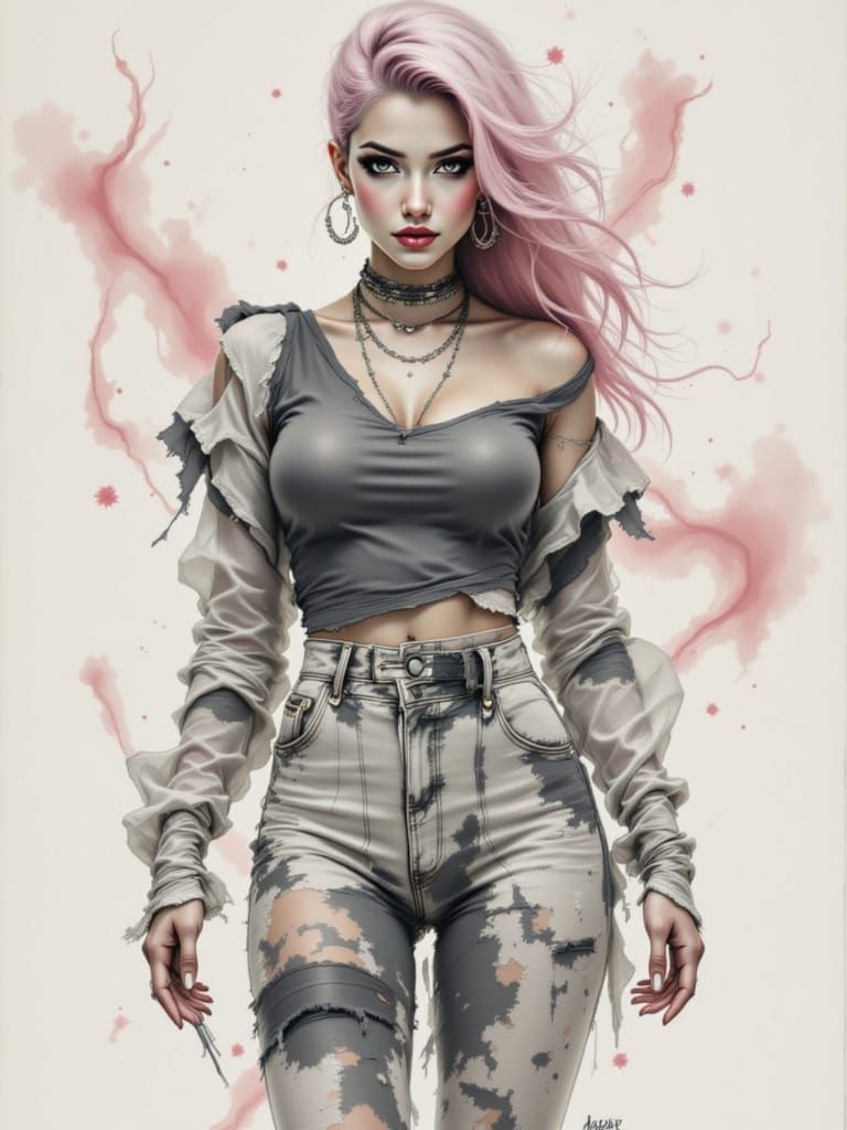 Create your own unique pink hair and grunge fashion images with our free AI image generator.