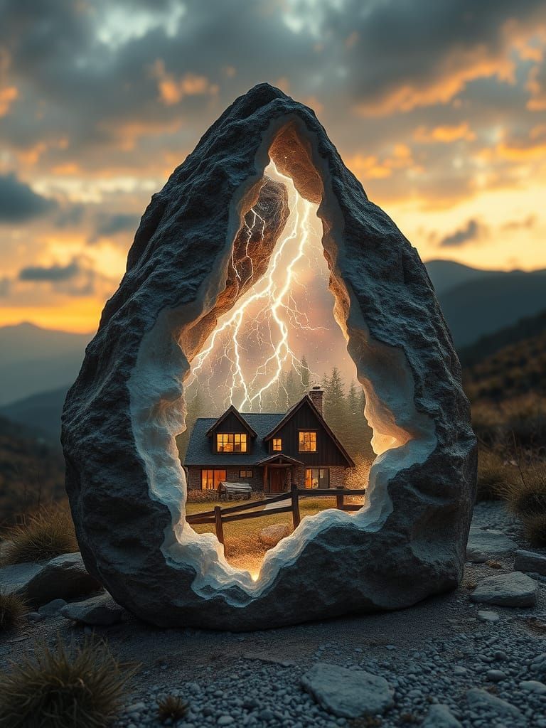 Generate unique semi-abstract art with our free AI image generator. It's easy to create crystal and stone-inspired cottages.