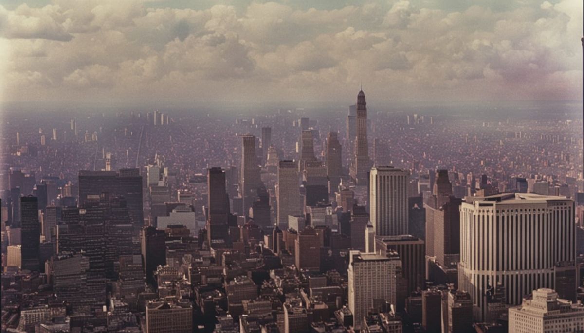A dramatic image capturing a Konpa music performance at Madison Square Garden in 1989. The cinematic shot features film grain and atmospheric lighting, reminiscent of a high-quality film still.