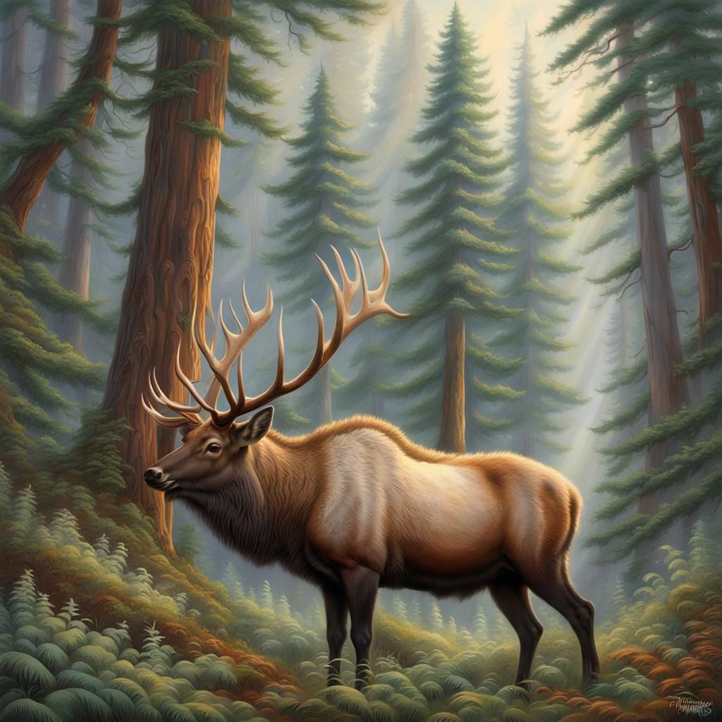 Create your own stunning elk images in redwood forests with our free and easy AI image generator.