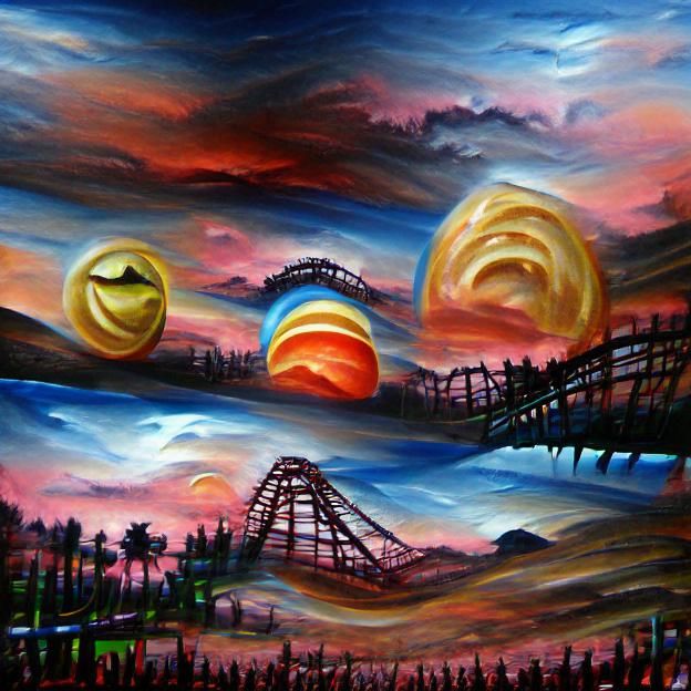 Easily create your own surreal rollercoaster and planet images with our free AI image generator.