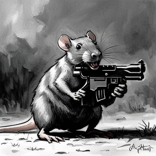 This image shows an evil rat in military garb firing a weapon. The sinister artwork features dramatic lighting and intricate details.