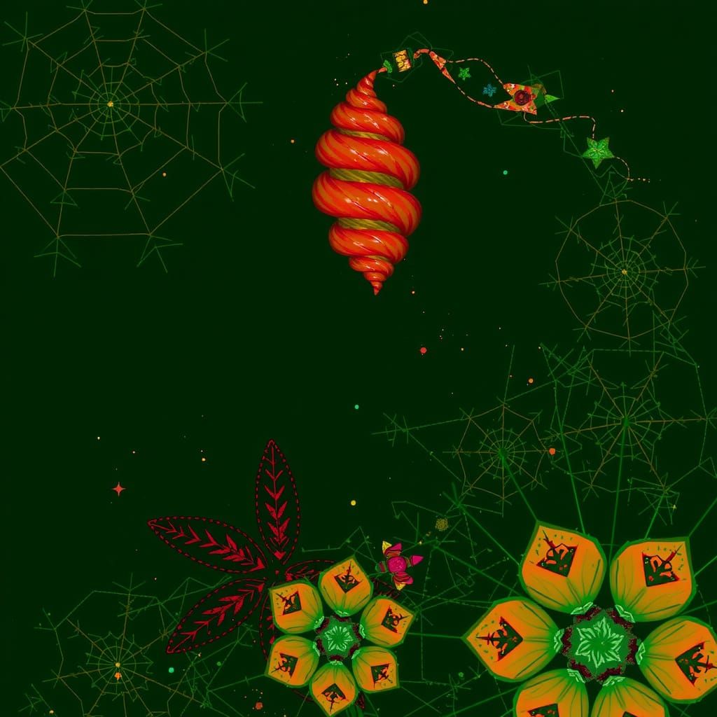 This image displays a dynamic, abstract composition dominated by shades of red. It features swirling, twisting, and spiraling shapes that create a sense of movement and depth.