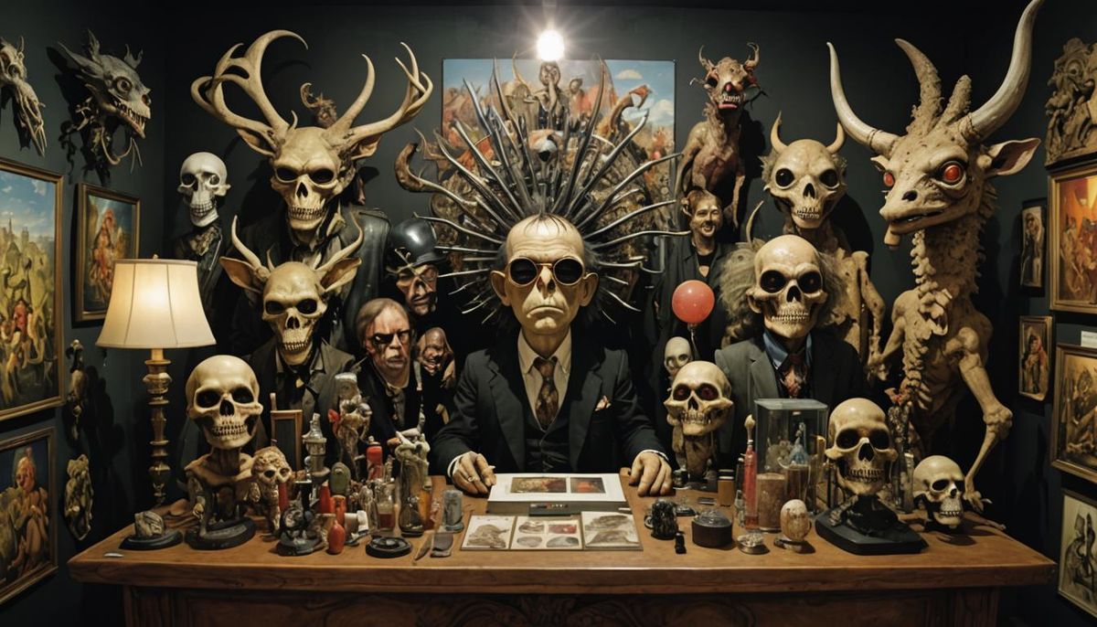This image shows a fantastical museum display inspired by the legend of Kaspar Hauser. The artwork features psychedelic and surreal elements reminiscent of 1960s and 70s graphic art.