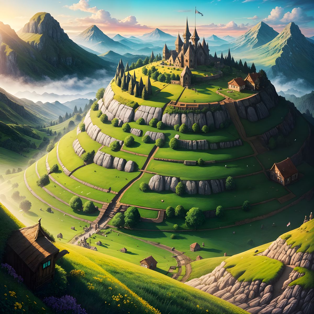 This image depicts an epic scene of people stumbling over molehills instead of mountains. The artwork has a dramatic and awe-inspiring quality.