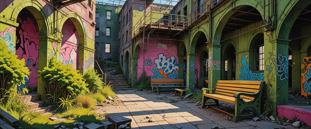 Create your own comic book style industrial wasteland scenes for free with our AI image generator. It's easy!