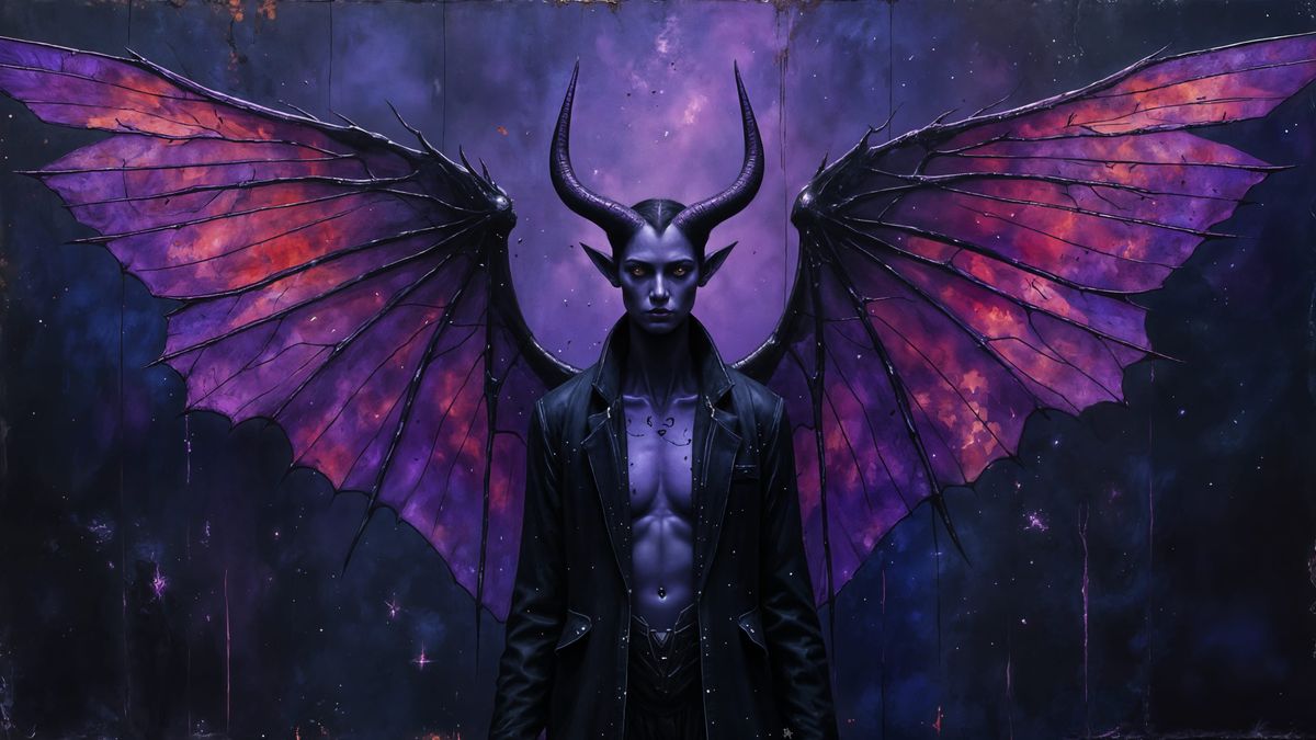 lora:Akimora:1.0 light-purple-skin female lora:Tiefling:1.0 tiefling with small horns and majestic dark-purple wings made of <lora:MJ6 D...