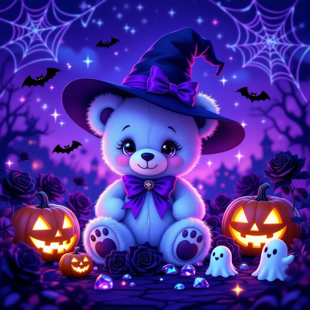 Make your own adorable kawaii baby blue teddy bear witch images for free with our easy AI generator. Perfect for Halloween!