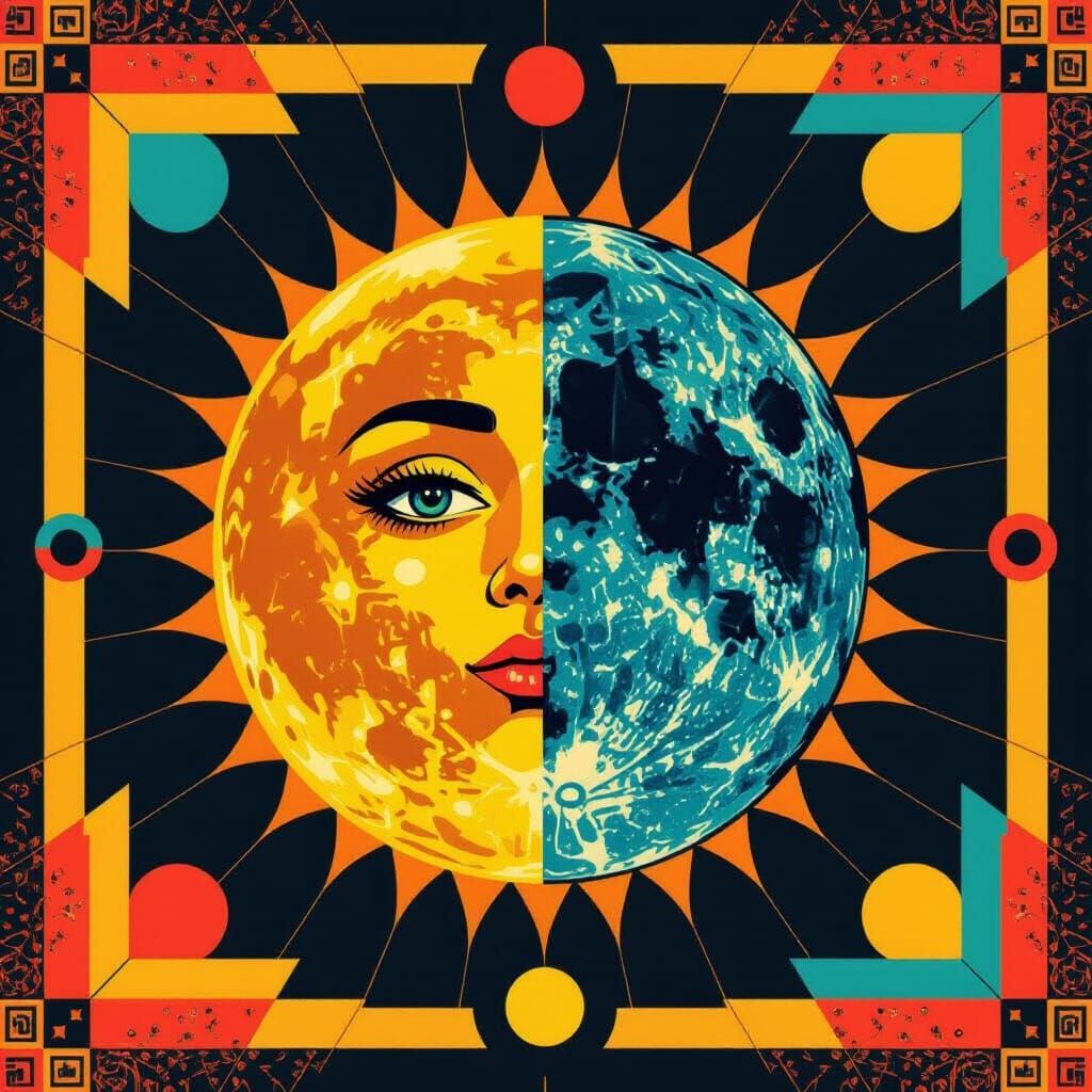 Easily create your own unique pop art sun and moon images for free with our flexible AI generator.