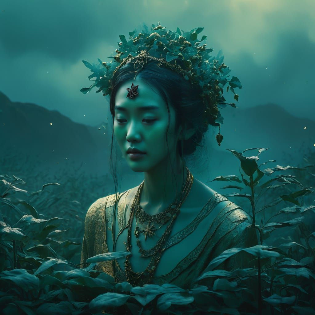 Jade rods, bamboo bridges, stormy mist. Contemplative meditation,