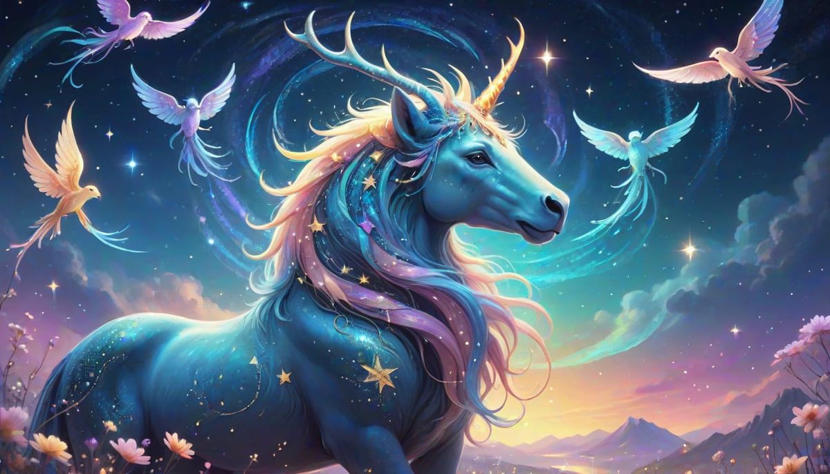 This enchanting digital painting captures whimsical fantasy creatures bathed in soft, ethereal light. Sparkling glitter trails and shimmering auras create a dreamy, mystical atmosphere with pastel colors.