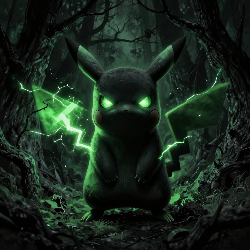 Generate unique dark Pikachu images with electricity and forest scenes. Free and easy to use!