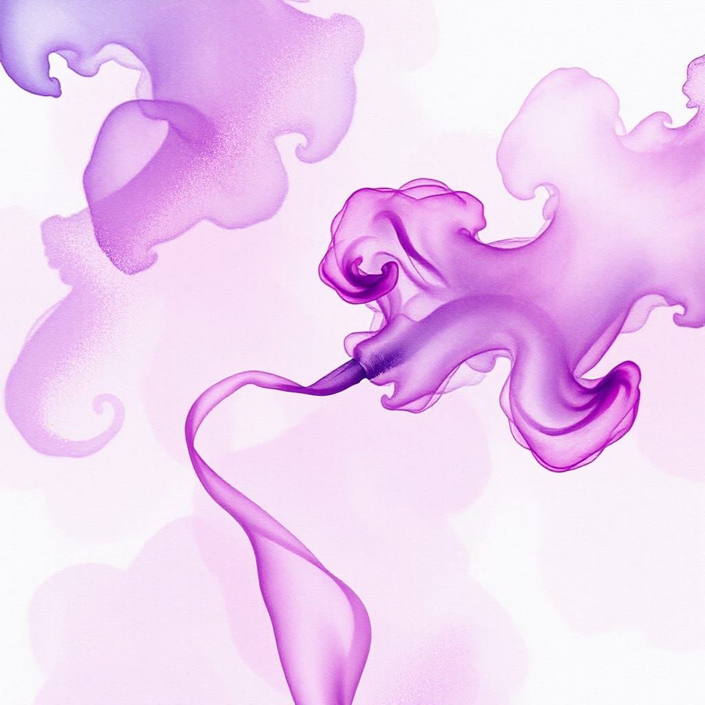 This image shows delicate smoke in purple and teal watercolor. The whimsical style and soft textures create an ethereal and dreamy illustration.