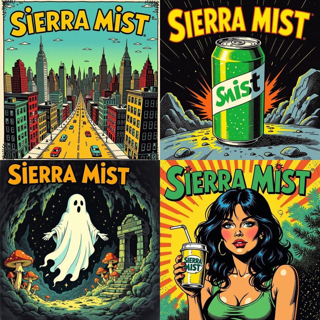 This image features a retro-style illustration of a Sierra Mist can, drawing inspiration from underground comix art and trending digital art styles.