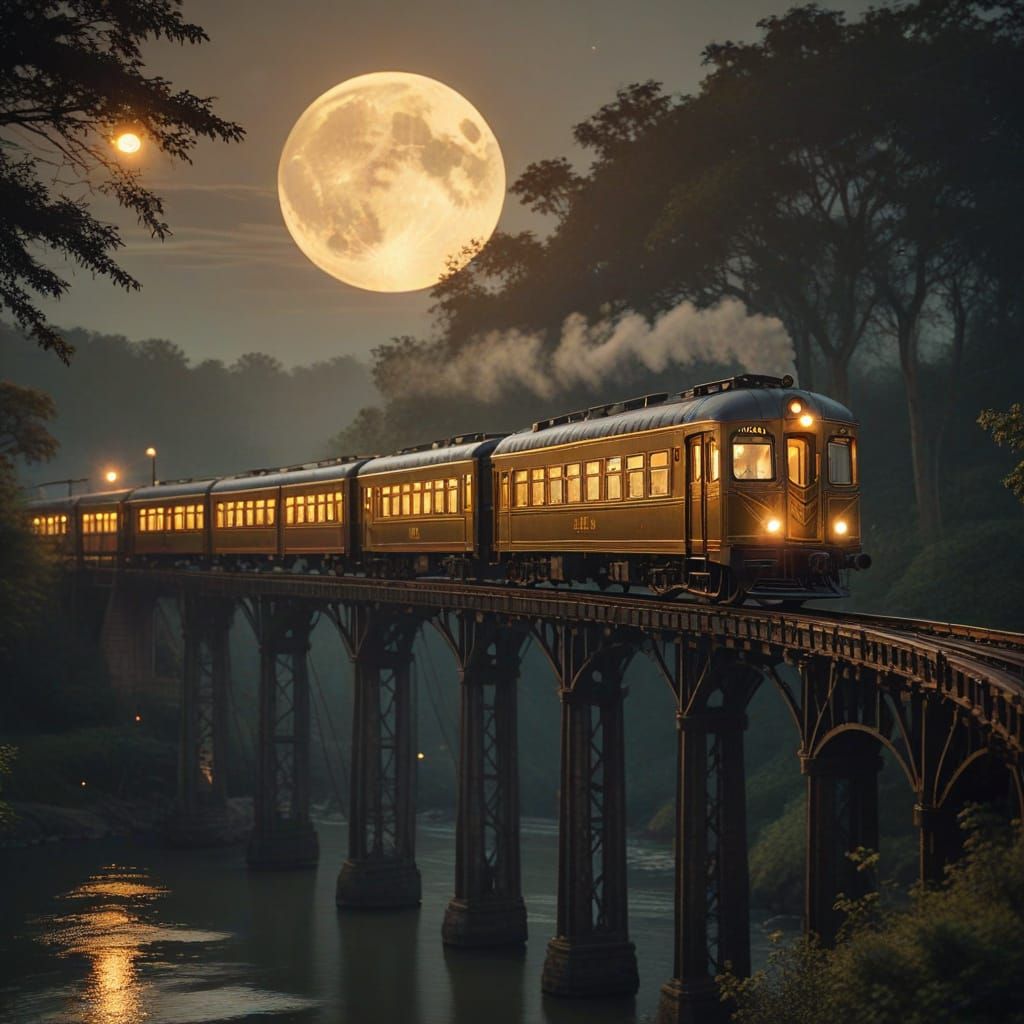 Instantly generate your own vintage-inspired train images under the full moon with our free AI image generator