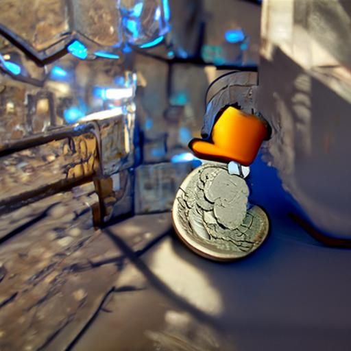 This image shows Scrooge McDuck rendered with 3D shading. The character design is trending on Artstation and features depth and shadow.