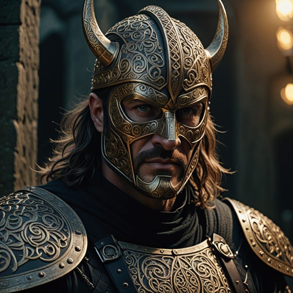 This image shows a middle-aged Irish man in warrior attire. The portrait features detailed textures, golden lighting, and a cinematic color grade, creating a dramatic and atmospheric mood.