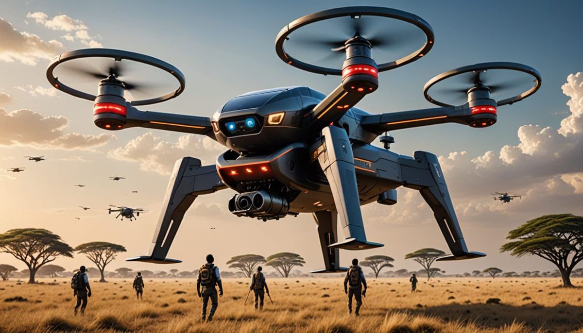 Create stunning images of drones flying over savannah landscapes with our free AI image generator