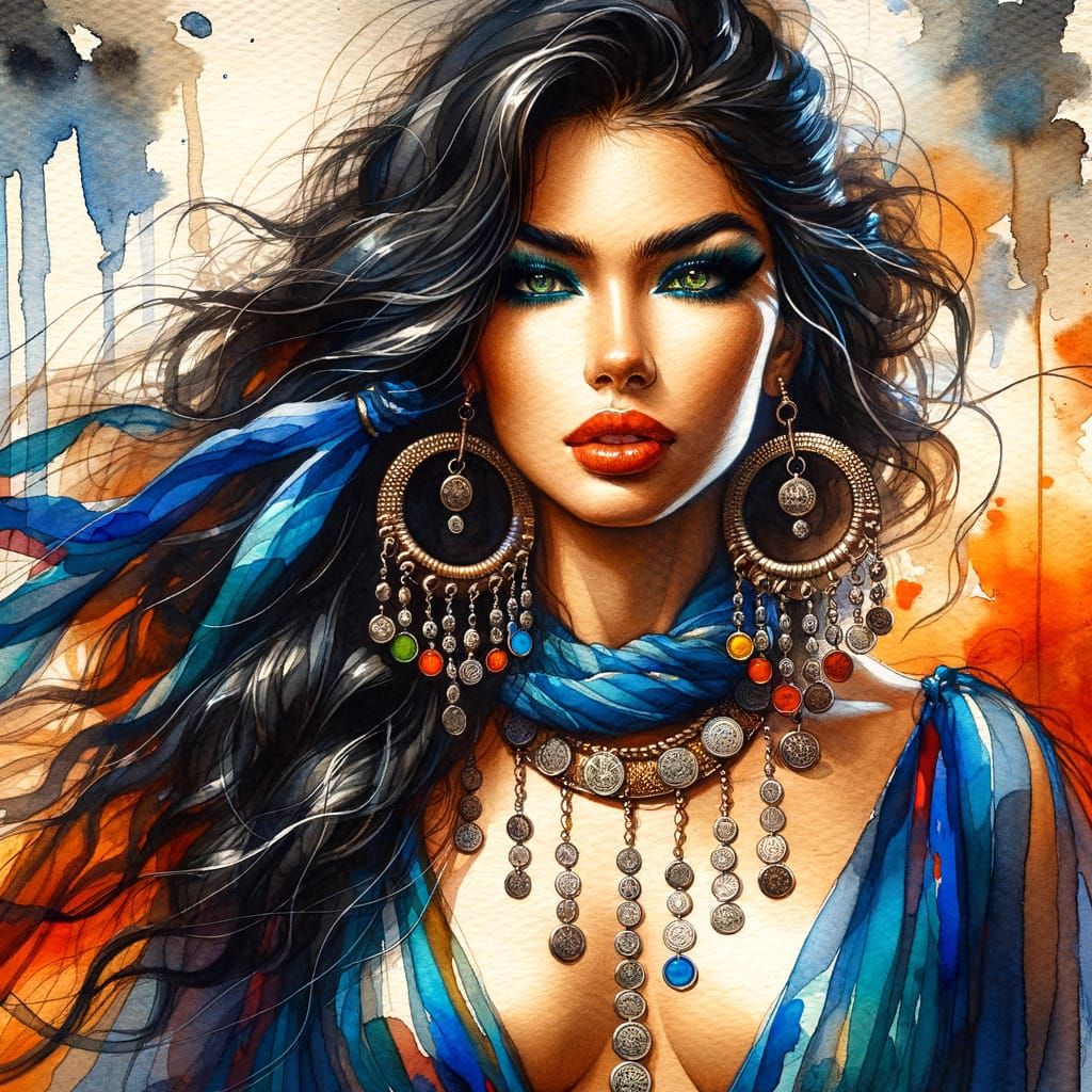 Create your own captivating watercolor portraits of gypsy women. It's free and easy with our AI image generator!