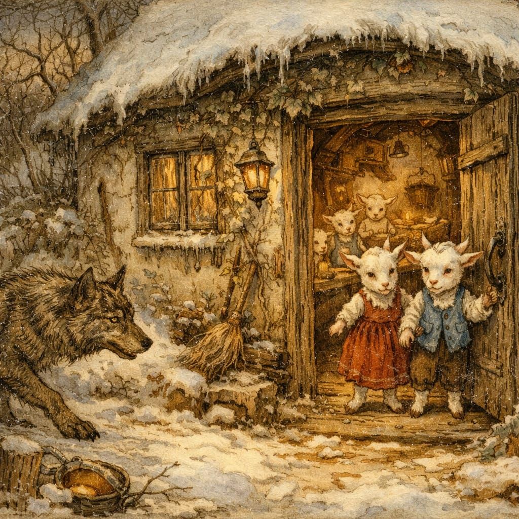 Generate unique images of 'The Wolf and the Seven Little Kids' or any other fairy tale characters. It's free and easy!