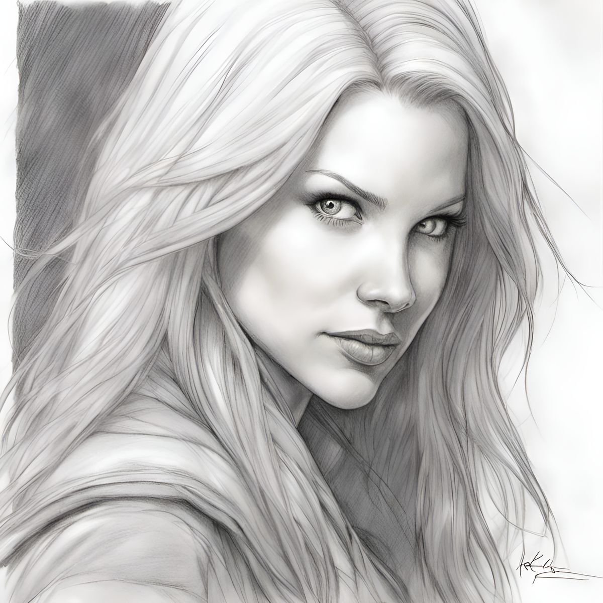 A detailed pencil sketch of a beautiful female pilot. The artwork captures the subject's strong features and determined expression, emphasizing realism and nuanced shading.