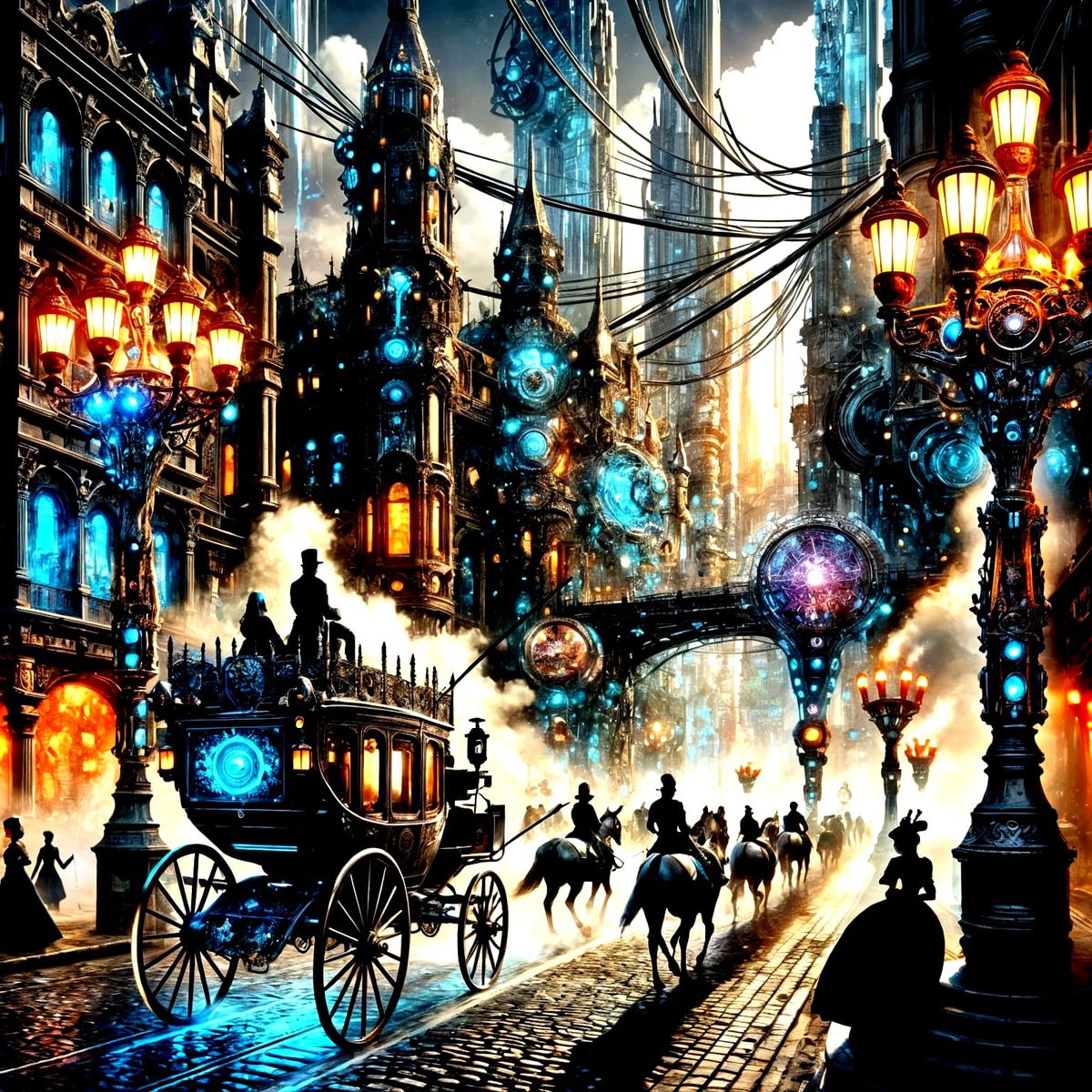 Fantasy art styles of the late nineteenth, early 20th century meets cyberpunk aesthetics