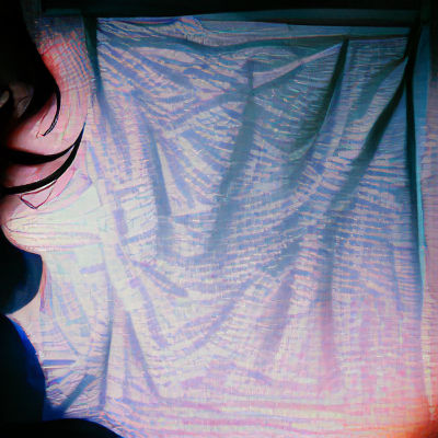This image shows a figure standing in the darkness. The scene is abstract and focuses on the interplay of light and shadow to create a sense of mystery.