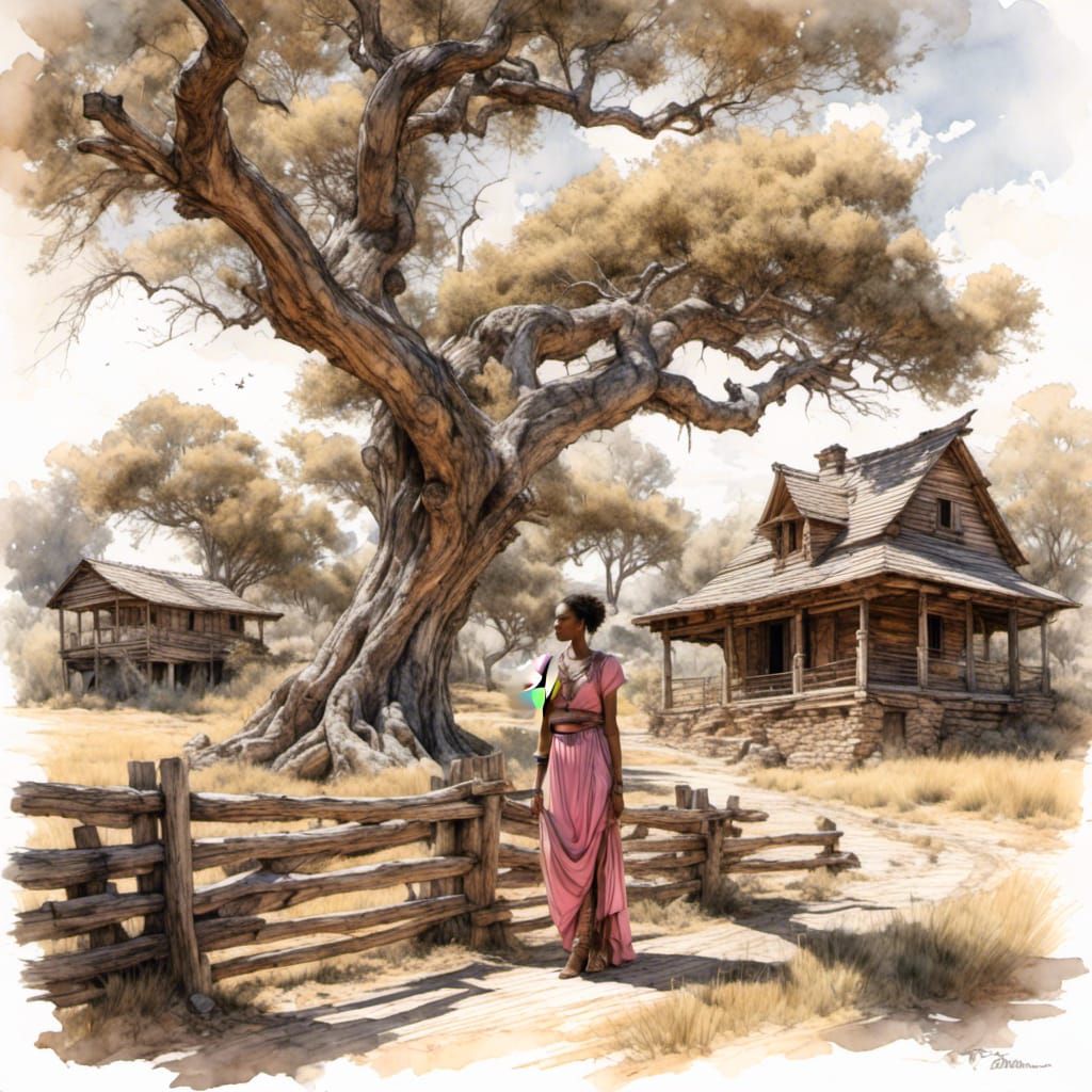 Stunning color Pencil Sketch portrait Young Women in a roman Pink Tunic