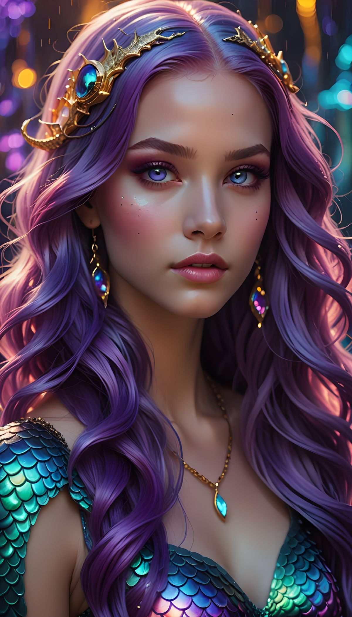 Create your own hyper-realistic digital art of mermaids with neon hair and futuristic elements. It's free and easy!