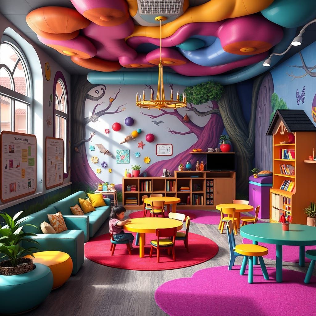 This enchanting Disney-inspired daycare center transports 3rd and 4th graders to a fantastical realm. Interactive murals, arts and crafts, and immersive environments foster creativity, socialization, and exploration, set against a backdrop of vibrant colors and intricate details reminiscent of fantasy co...