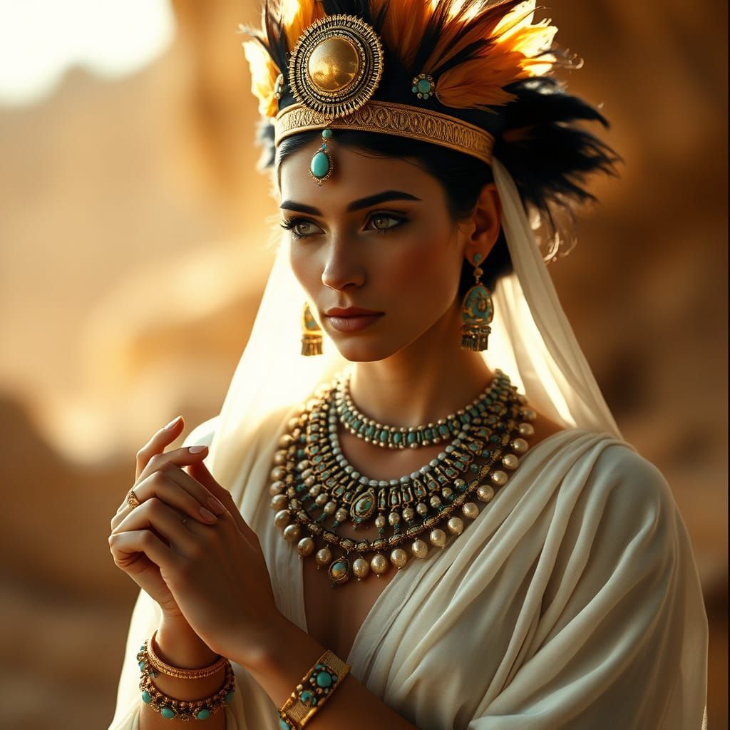 This image depicts a stunning, celestial goddess with captivating and ethereal beauty, surrounded by luxurious details and a regal atmosphere.