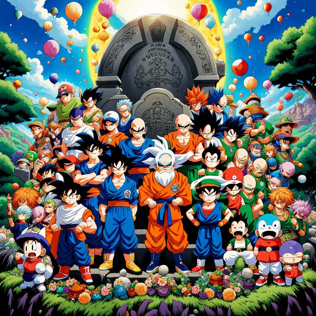 This illustration depicts characters in a solemn tribute scene. The rainy backdrop enhances the emotional tone of this hyperdetailed and maximalist art.