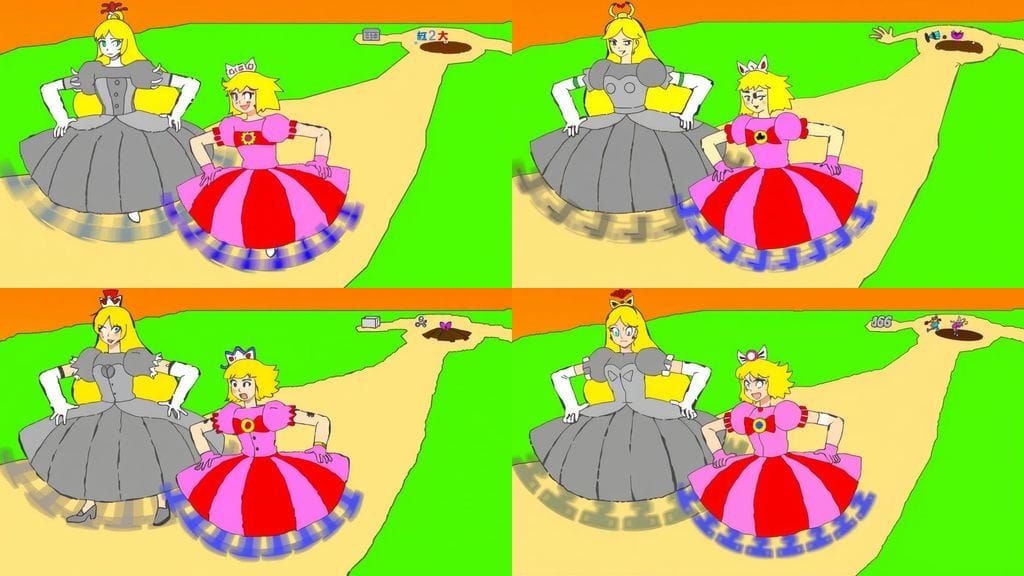 This image shows a young woman with fiery orange hair tap dancing with a speedy blur of legs. She is in vibrant Anime style with bold lines and soft pastel colors.