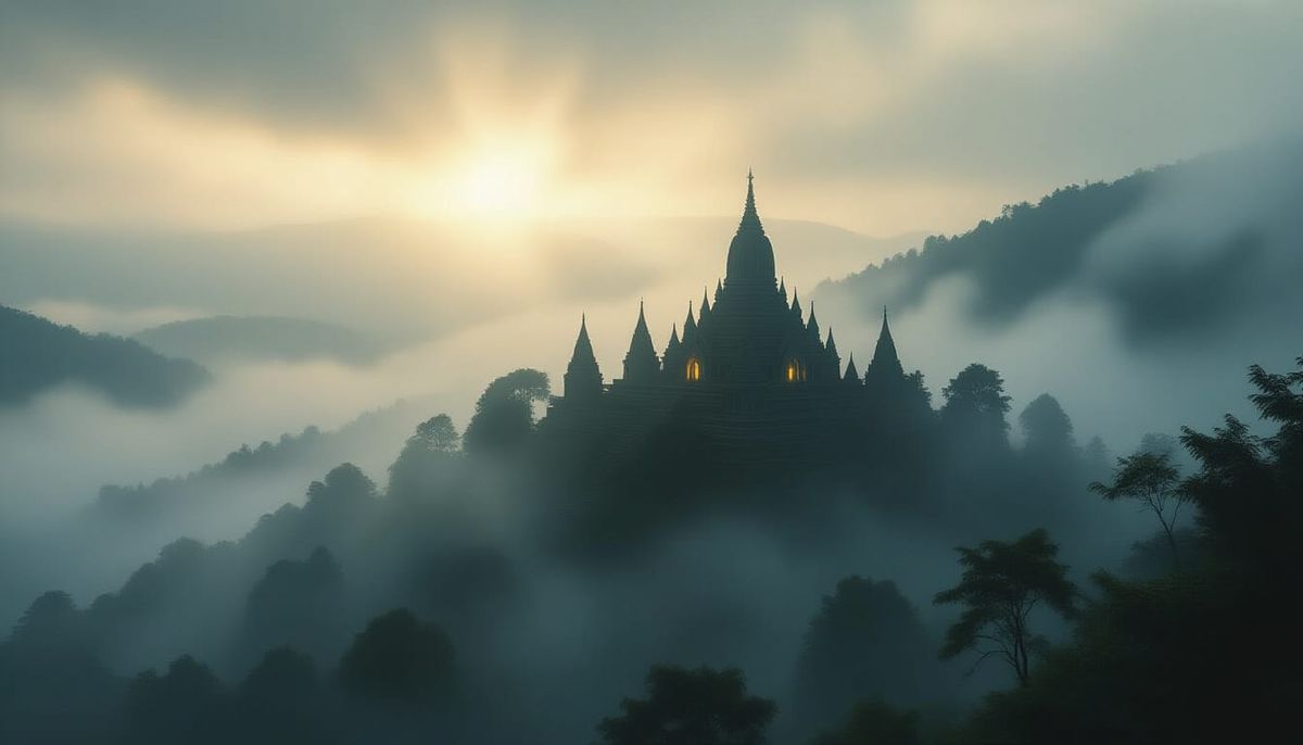 Generate unique forest hilltop temple images with supernatural tension, easily and for free. Unleash your creativity!
