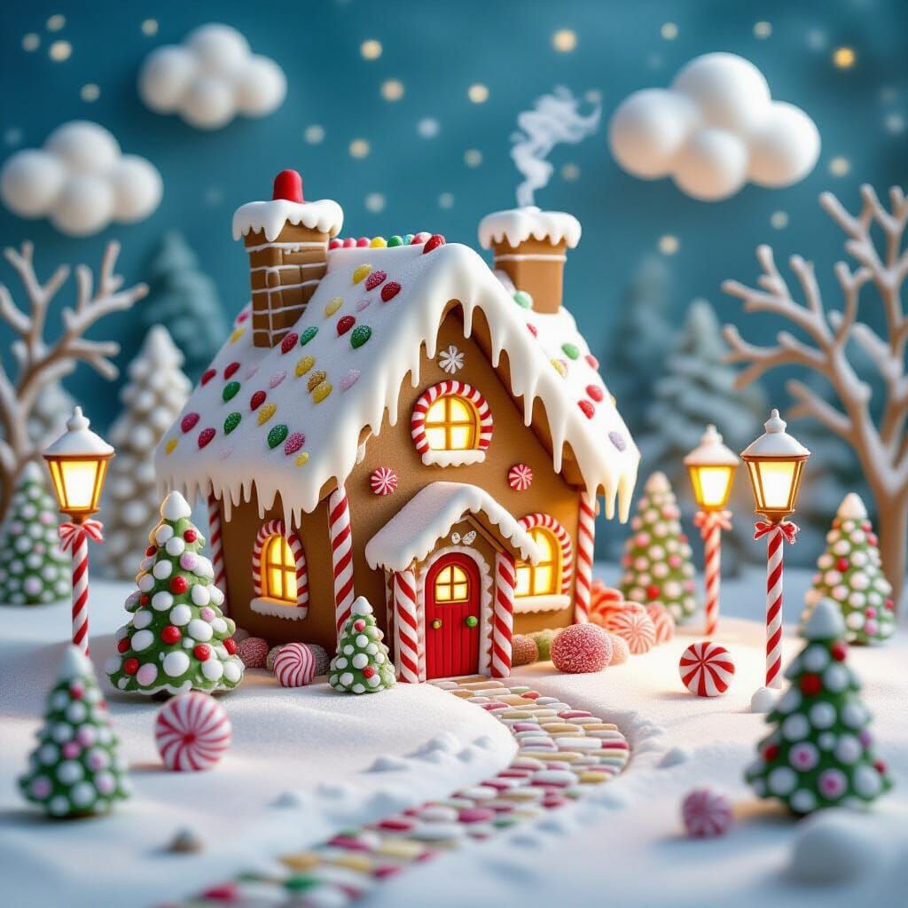 Easily design a magical gingerbread house with our free AI image generator. Get creative and bring your sweet ideas to life!