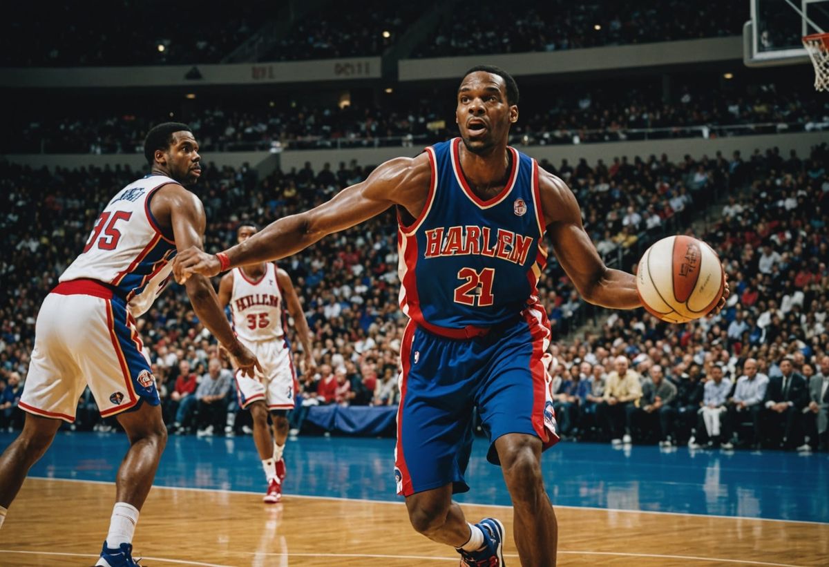 Make your own stunning sports images! It's free and easy to create cinematic Harlem Globetrotters action shots with AI.