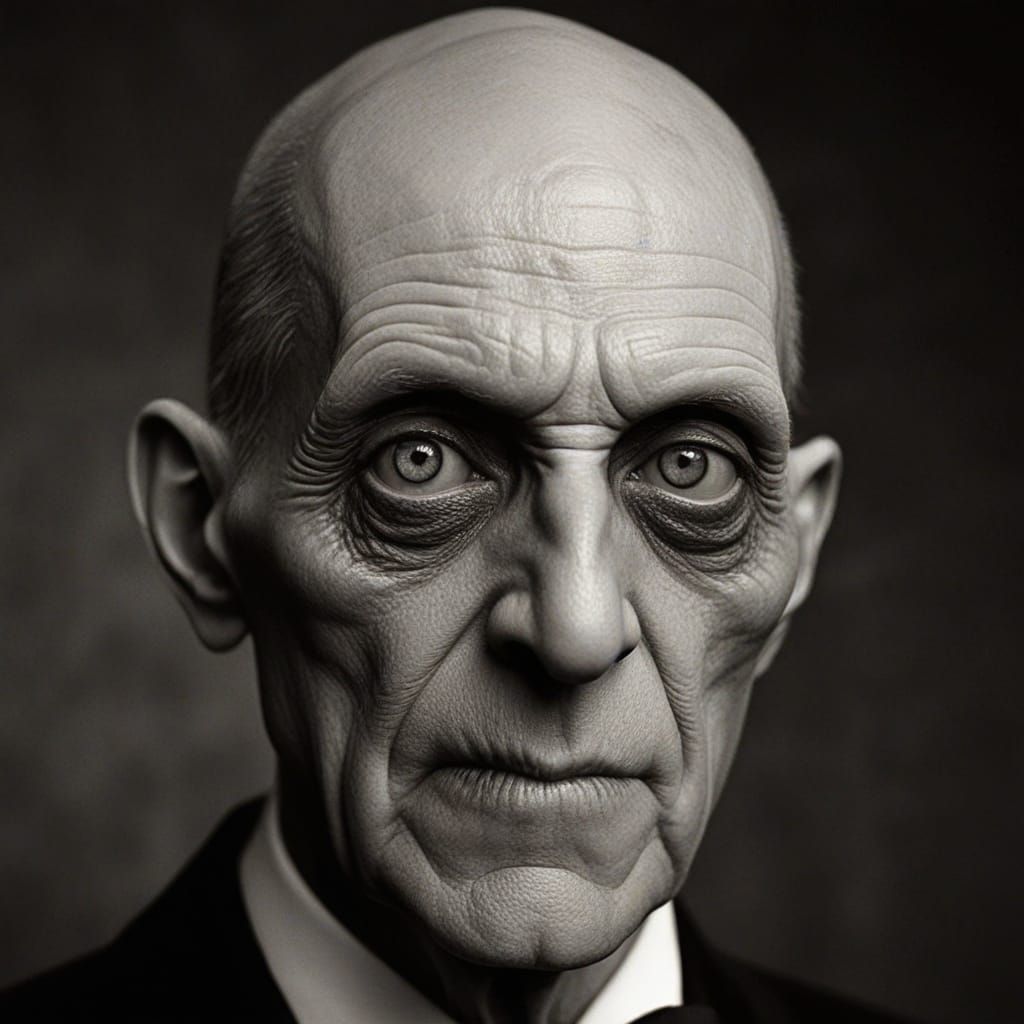 A haunting image of a sinister humanoid creature, evoking a Lovecraftian horror. Rendered in a vintage daguerreotype style with a dark, eerie atmosphere.