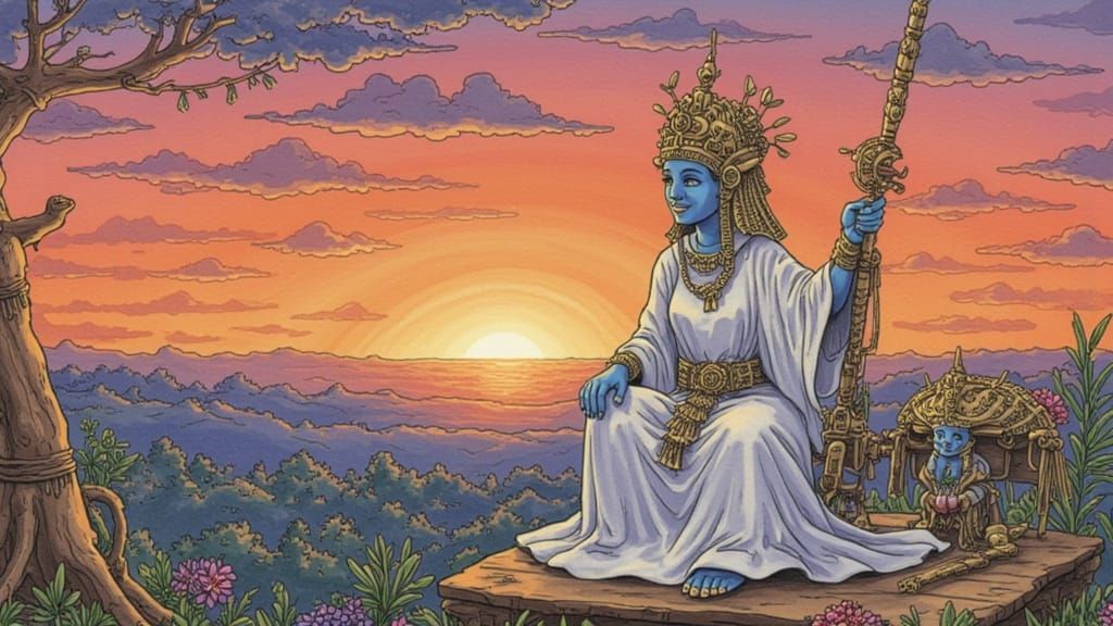 This AI-generated image utilizes specific LoRA models for sunset and instructions, creating a unique visual composition.