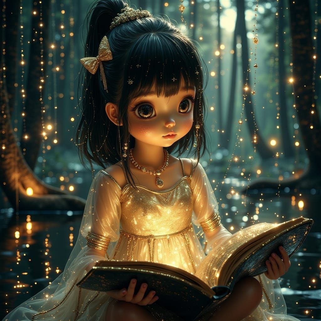 This image shows a mysterious magic accidentally awakened by a young apprentice witch. The scene is rendered in a Ghibli-inspired style, with a focus on whimsy and wonder.