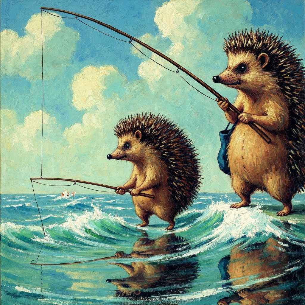 Easily generate unique images of brave hedgehog fishermen with our free AI tool. Try it now!