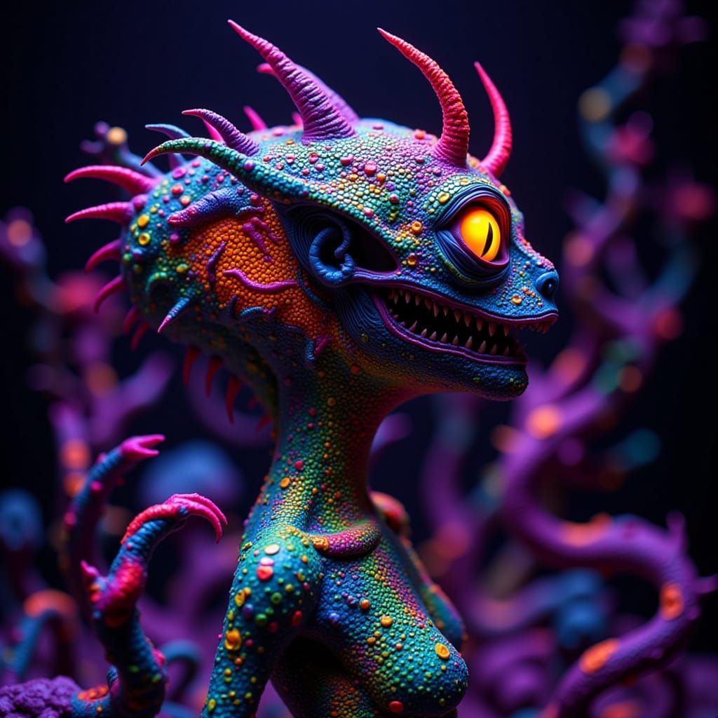 Create your own bright neon claymation images with our free AI image generator. It's easy and fun!