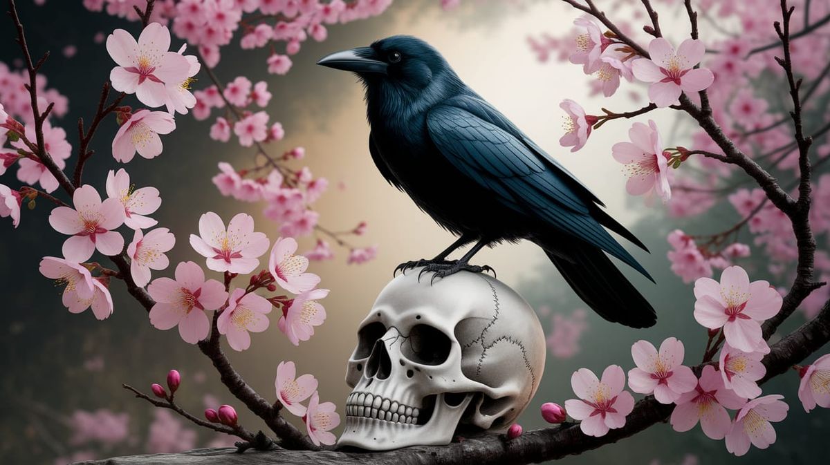 Easily generate unique images of crows, skulls, and cherry blossoms with our free AI art tool. Try it now!