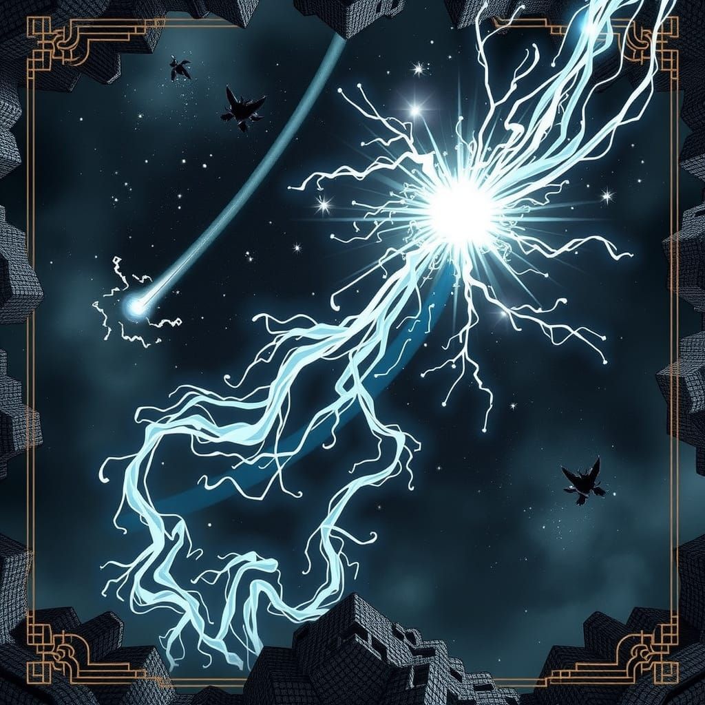 A surreal image of a figure with a raisin behind their ear, reflecting in 102 mirrors. The image has elements of shadow and light, creating a deep and intriguing visual.