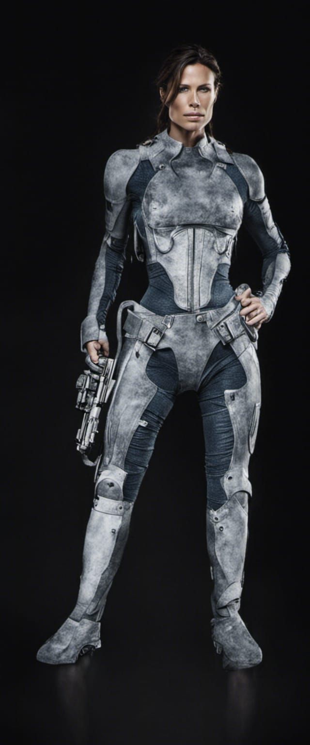 This image shows a portrait of Rhona Mitra. The AI has rendered her likeness in a photorealistic style, capturing her distinctive features.