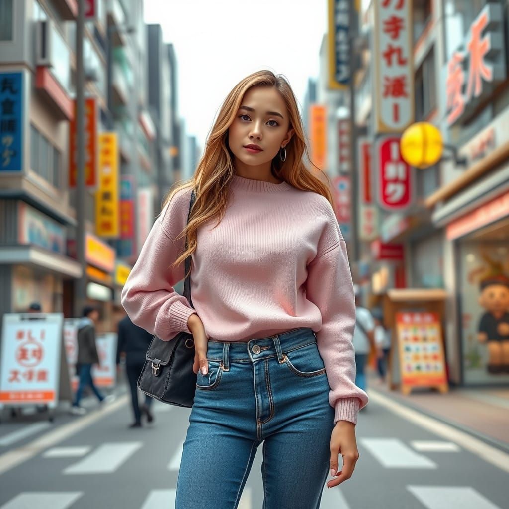 A pastel-themed anime-style image of Sabrina Carpenter in Tokyo. This artwork evokes the delicate lines and soft colors of renowned anime artists, blending traditional and digital techniques.